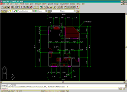 I could convert an existing AutoCAD R14 drawing into a new 3D ADT drawing. I carry one of my student projects around with me nearly everywhere I go and since it was conveniently available, that was what I used. I literally redrew this 2D drawing in minutes. I had all the walls, doors and windows done in under 10 minutes. ADT can automatically convert lines and polylines into walls but since I did not have a convenient outline to convert, it was faster to simply trace over the top by snapping to endpoints and intersections. |