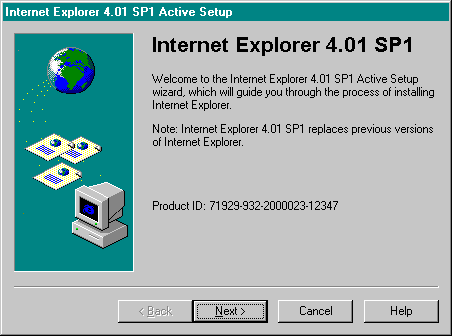 - Click Next in the "Welcome to Internet Explorer Active Setup" window.
