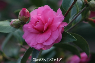 A versatile performer displaying profuse, brilliant pink, double blooms and glossy dark green leaves with a short, pendulous habit. Flowers are perfect for cutting. Excellent choice for a colorful low hedge, espalier, or groundcover. Mid season bloomer. Evergreen.