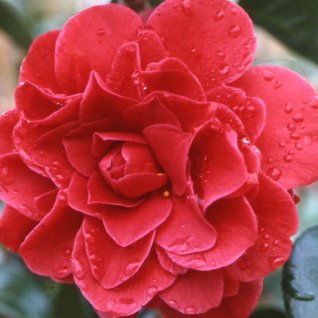 Spectacular, dark red, formal blooms adorn the glossy dark green foliage from winter through earliest spring. A dazzling evergreen shrub, wonderful for use in woodland borders or as a stunning foundation plant. Can even be mass planted and grown as a colorful hedge! Said to work particularly well in milder regions - meaning us, dear NorCal Cottage Gardeners!
