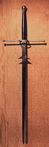 Zweihander with Parrying Hooks ~ 102Fittings are Steel Guard: 16" Hilt: 14 1/2" Handle: 12" NOTE: All weapons are made by hand and some individual differences may occur. We reserve the right to make substitutions of individual parts as dictated by stock on hand. |