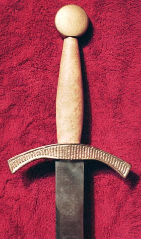 El Cid ~ 113Fittings are Manganese Bronze Guard: 7" Hilt: 9" Handle: 6" (Shown with Hand and a Half regular blade) NOTE: All weapons are made by hand and some individual differences may occur. We reserve the right to make substitutions of individual parts as dictated by stock on hand. |