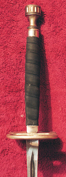 Figure Eight ~ 429 Fittings are Manganese Bronze Leather wrapped handle Guard: 4" Hilt: 7" Handle: 5 1/4" (Shown with Epee blade) NOTE: All weapons are made by hand and some individual differences may occur. We reserve the right to make substitutions of individual parts as dictated by stock on hand. |