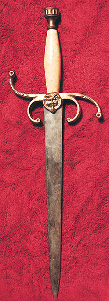 Florentine ~ 721Fittings are Manganese Bronze Guard: 6" Hilt: 6" Handle: 4" (Shown with Dirk blade) NOTE: All weapons are made by hand and some individual differences may occur. We reserve the right to make substitutions of individual parts as dictated by stock on hand. |