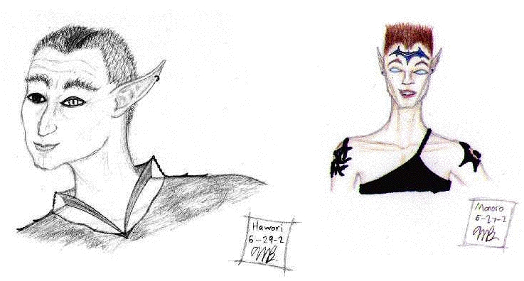 Three more in the "myself as an elf" series, a good deal smaller and sketchier than the above pic. It's interesting how they turned out as three entirely different people, not three versions of me at all.