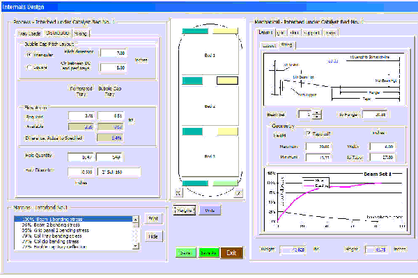 I've also written complex userform-based Excel applications for internals sizing that are used by a major oil company. This integrates Excel with Word for numerical processing and document production. Below is the main user form with process information on the left and mechanic information on the right. The different catalyst bed information are accessed by clicking on the button in the imagine in the middle of the form. The color of the buttons change for the mechanic side when stress exceed (red) or come close to (yellow) the limit stress.