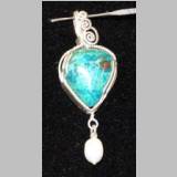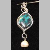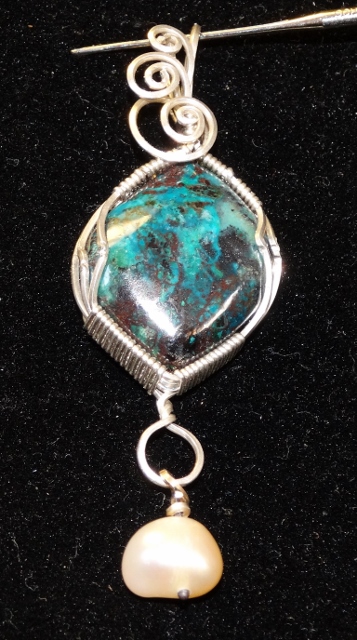 Chrysocolla in Silver Ore -- Sterling Silver wrap w/pearl
