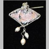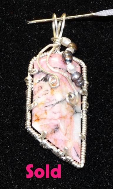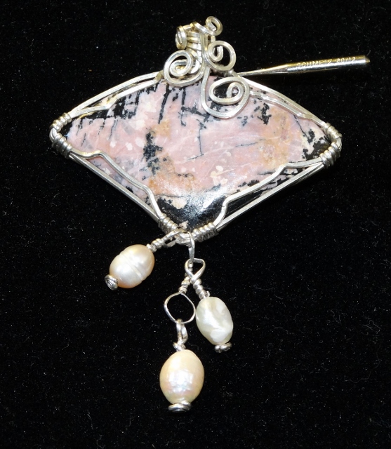 Rhodonite Fan w/pearls -- Sterling Silver wrap