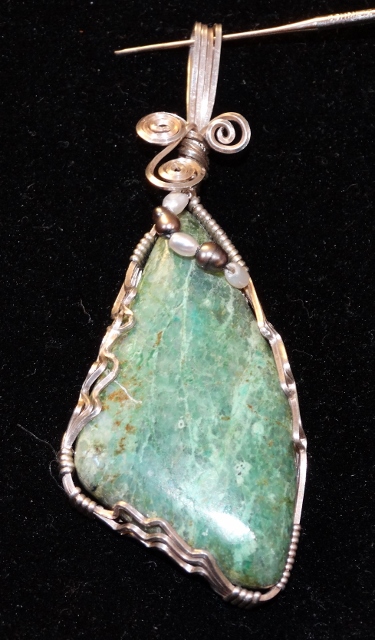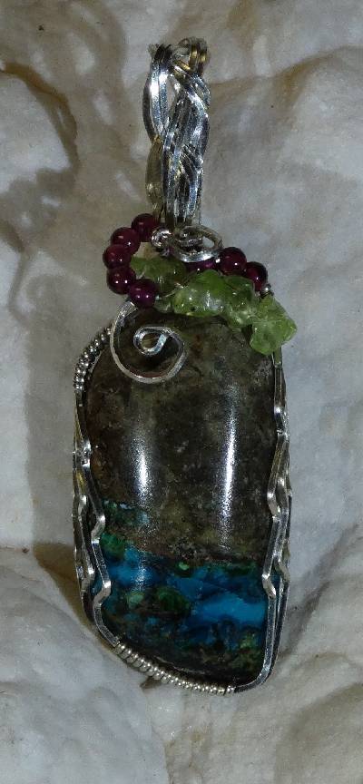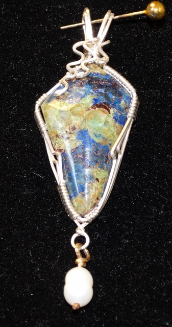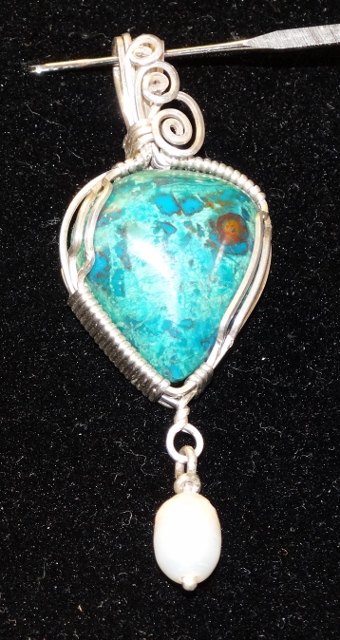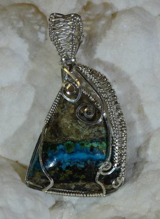 Chrysocolla in matrix -- Sterling Silver wire wrap
