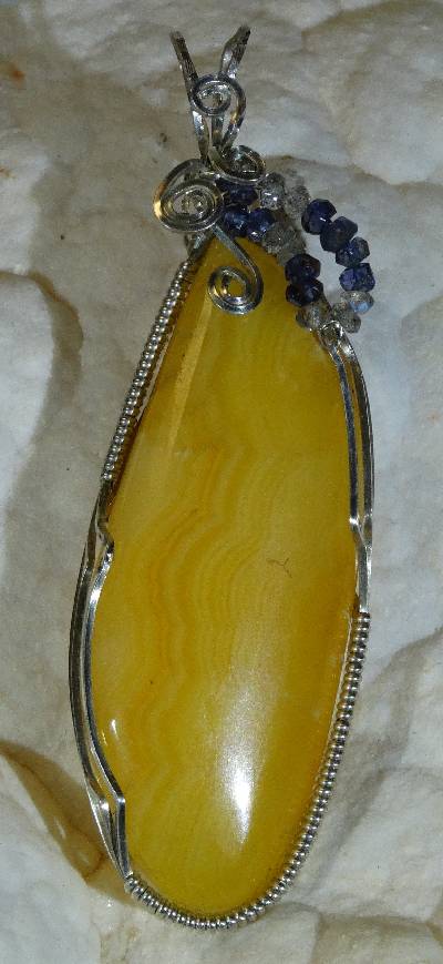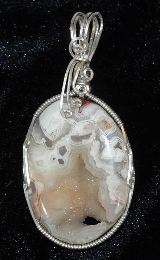 Crazy Lace with Druzy pocket -- Sterling Silver wrap