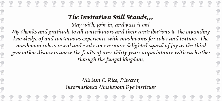 promotion of mushroom dyes. Thus THE INTERNATIONAL MUSHROOM DYE