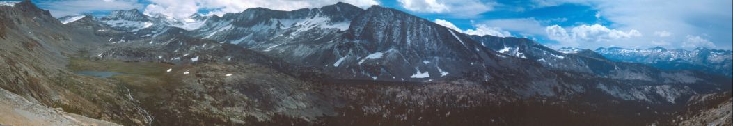 (High resolution panorama of the Cathedral and Clark ranges seen from Vogelsang Pass (16849x2890; 22 MB file))