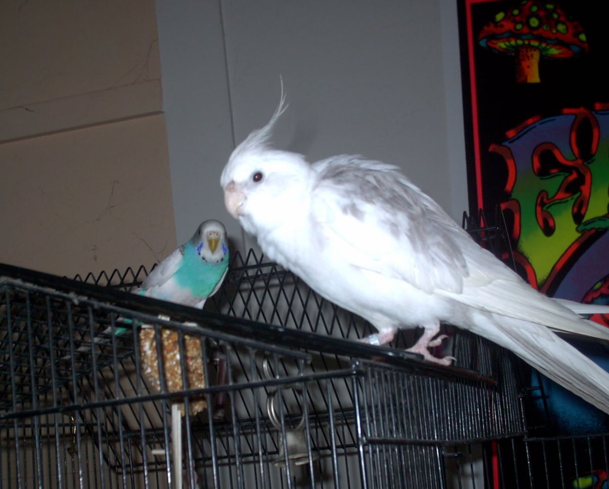 Our parakeet (Sky) and a cockatiel ("Baby") that