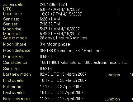 | LAST READING AT TIME: 10:07 PM DATE: April 15 2007 | |||