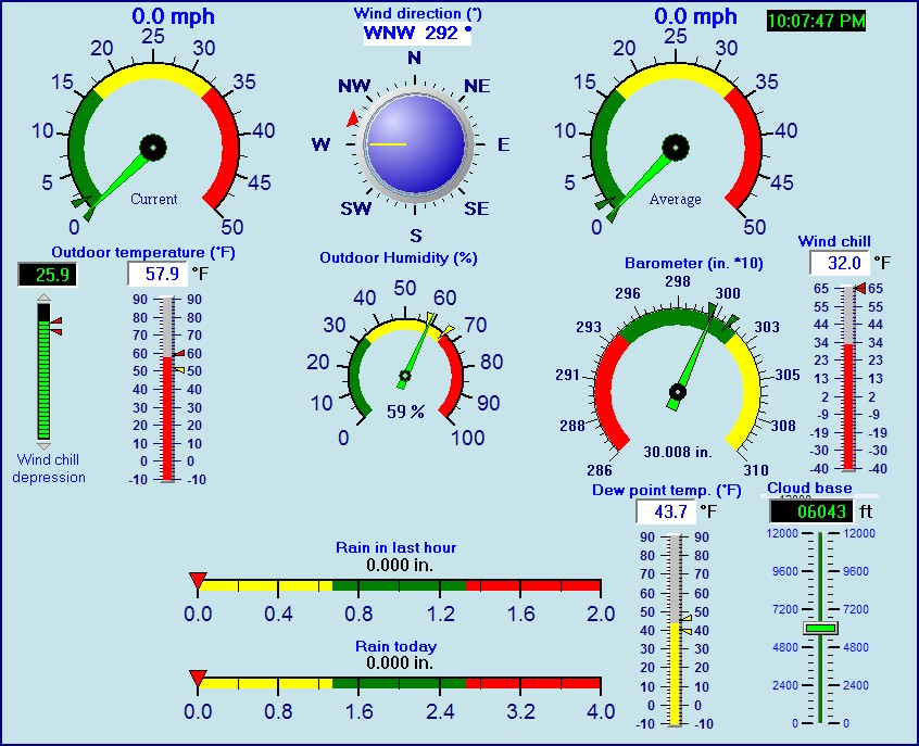 | Humidity | 59 %, Humidex 54.0 °F | Barometer corrected to msl | 30.008 in. (1016.2 hPa) |