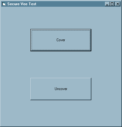 We added two command buttons to the form to illustrate calling the functions in our DLL. The button labeled Cover calls the SecureVee function when pressed, while the button labeled Uncover calls the SecureVeeCleanup function. Figure 5 contains the listings showing the click callback functions for each of the two command buttons.