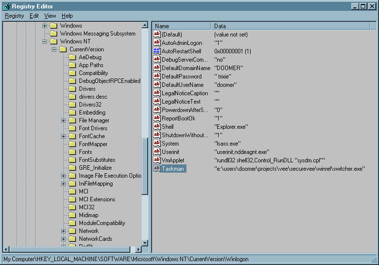 HKEY_LOCAL_MACHINE\ SOFTWARE\ Microsoft\ Windows NT\ CurrentVersion\ Winlogon\ Taskman