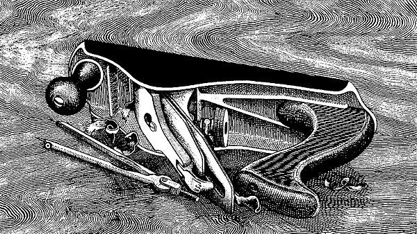 Incidentally, the name of this drawing, Primal Union, and its large basic image elements refer to the 4th and 56th verses of Lao Tsu's 2,600-year-old masterwork Tao Te Ching. Here follow those brief verses, so you may better understand the significance of "The Dustpan," as my friends call this piece. |