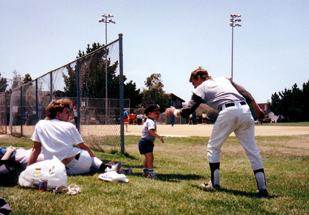 with quick feet and a strong arm, Jim played the field and worked the bench.