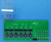DT-IO-6 (6 Button Test Fixture) Price: $9.00 (USD) | Developer Tool for boards with 5 or 6 pin I/O terminal blocks. It has 6 switches for momentary inputs, 6 jumpers for constant inputs, 6 LED's to show state of outputs (if outputs are enabled) |