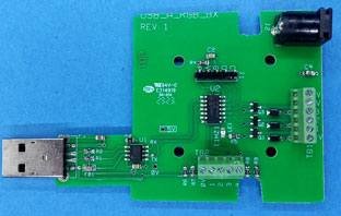 Plugs directly into the USB port (no cable required) has a 4 I/O terminal block for additional Inputs or Outputs or for remote trigger of scenes. Same function as the above board but layed out for the enclosure shown below. |