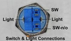 lighting, momentary switch. Overall length below mounting = 40mm (plate