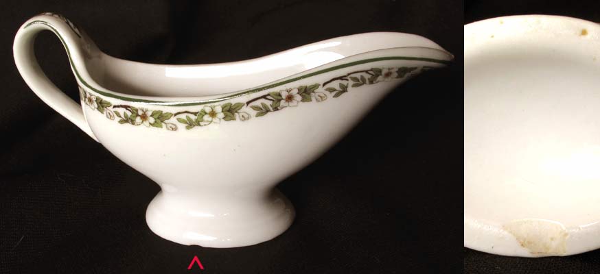 A-10997 gravy boat - individual 6 1/4" W (4-) light wear / 2 hairlines across handle (Buffalo / Wanamaker)