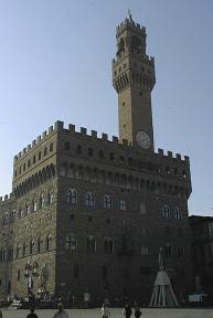 In our search for a place to stay, we came across Piazza Signoria. Immediately striking due to the number of ancient and reproduction Roman and medieval statues, we naturally wandered over to the imposing fortress of a building on the square and discovered Firenze's town hall, Palazzo Vecchio . Before its construction in the 13th century, town elders (the Priors) held meetings in private homes or public places -- at great risk. Seems that either outside cities or gangs associated with one of the town's five ruling families would oftentimes attack those at the town meetings, so this defensible town hall was built to give some sanity to those proceedings. Just outside of the main entrance stands a reproduction of one of Italy's most famous statues: David by Michelangelo.