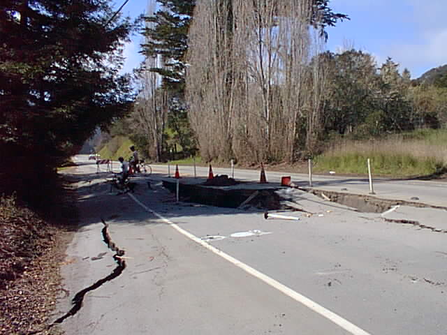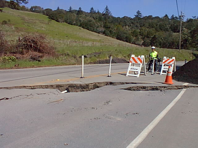 The climb up East Old La Honda was typical; West Old La Honda still required extra care descending, but it was in the best shape it had been in many weeks. Descending West 84 was quite fun, but I did stop to take pictures of a large collapsed section of pavement west of La Honda. This put us a few minutes behind the rest of the ride.