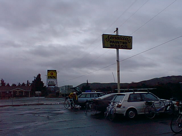 After deciding to give Ultra Precision Racing a try, all valve stems were aligned, and the ride back started. This proved fateful when the triple tandem paceline with various singles in tow roared through Paicines. The vibration from the valve stems rotating at high speed in unison induced a ground motion that resulted in the entire hillside covering the road a few days later, cancelling the 1998 MegaMudster.