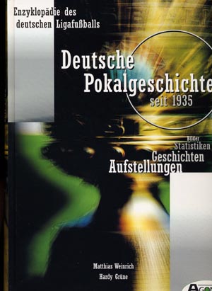 SERIES = (Enzyklopädie des deutschen Ligafußballs VI) TITLE = Deutsche Pokalgeschichte seit 1935 AUTHOR = Hardy Grüne, Matthias Weinrich PRICE = EUR 38.22 (hardcover) SIZE = 512 pages YEAR = 2000, Agon Sportverlag SOURCE = www.amazon.de RATING = 5 stars