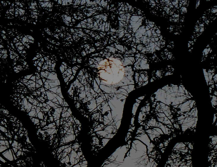 This feature offers huge exposure on the downhill side. The steep hillside trail wraps around the terrain for a mile or so then disappears into the woods. Though dark, there was little problem navigating the route. The trail dumps out at the cow-funk meadow. The dry ground made it possible to traverse this area with minimal impaction of bovine nastiness. The vaginated tree grove was another official safety zone. It marks the end of the downhill section and starts another climb across more semi bald hills.