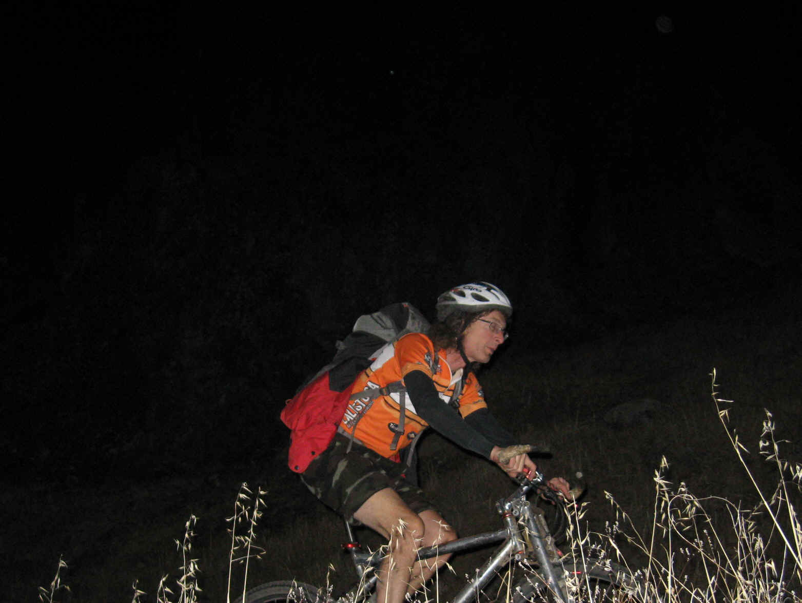 The three continued past the Bear Valley turn-off to the wind cave. This was another prime spot to take a break and soak up the beauty of the night. This location is extremely remote. No signs of civilization are visible. Only an occasional passing jet liner hints that there is something else going on in the world. The riding was mostly easy, the route was known and the warmth of the evening combined to push the experience into the superlative degree.