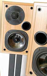 MDF and covered in solid birch wood veneer. Speaker edges are beveled to