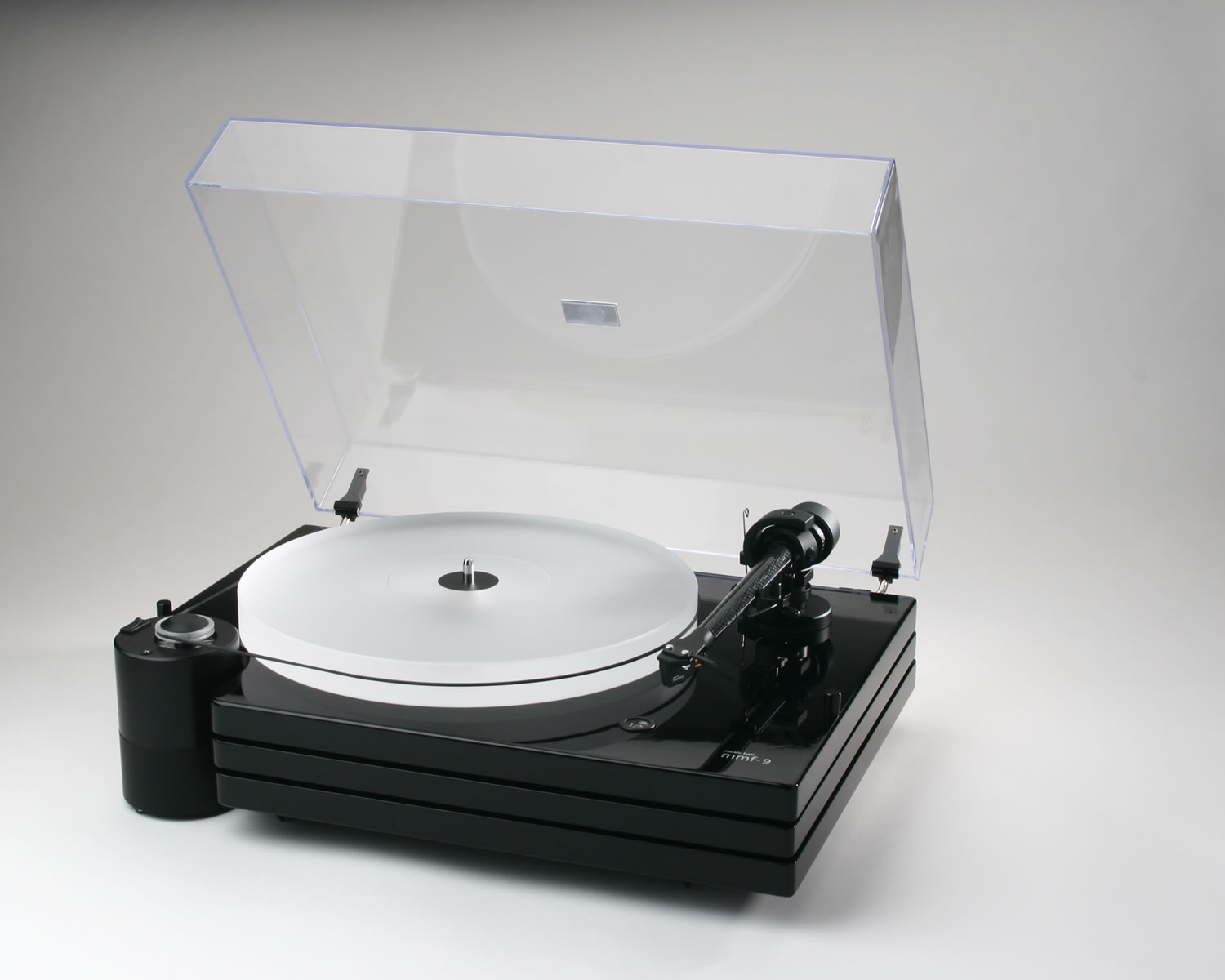 The music hall mmf-9 turntable, our flagship model, is a 2-speed belt driven audiophile turntable employing the unique triple-plinth construction originated by music hall. The distinctive design isolates the critical sound reproducing components; platter, main bearing, tone arm, and cartridge on the top platform from the adjustable tip-toe feet, electronic speed control, and wiring which are mounted on the bottom platform. The motor is isolated on its own platform and completely decoupled from the turntable. Four Sorbothane hemispheres separate each of the three plinths and provide additional vibration damping. The mmf-9 comes in a high-gloss piano black lacquer finish and is available with or without cartridge.