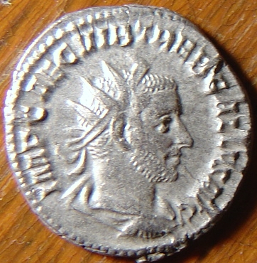 | 63 | IMP CAE C VIB TREB GALLVS Bust radiate, draped, cuirassed r. | From Trebonianus' first issue. There was only one of these out of all 6000+ Rome mint Trebonianus coins listed for 19 hoards in the "Cunetio Treasure." RIC calls this a mule with the reverse of Philip but that is not the case. |
