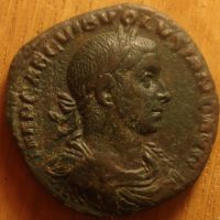256a / 74 obv. IMP CAE C VIB VOLVSIANO AVG  Laureate draped cuirassed bust right The most common type of Volusian sestertius