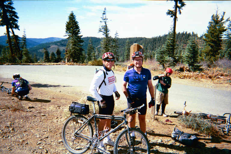 Denny and his rigid frame bike consult with Mike prior to the start of the ride. |