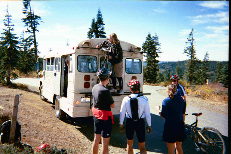 Shuttle Bus ride to the top of Sierra Butte. Soon we will be on the 15 mile & 5000 foot decent! |