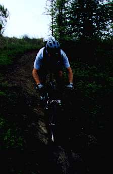 Throwing caution to the wind, our Texas Ranger grips his bike firmly and rides the critter down a slight incline....