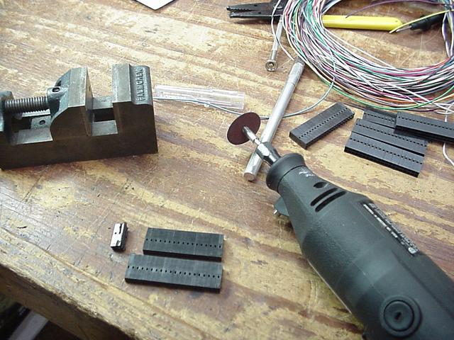 Couldn't locate 34 pin headers required for the Axiom CPU header interconnect plugs so we had to modify standard 40 pin units to fit. A dremel and some Exacto knife work did the trick. When they layed out this board they sure didn't give any extra room around those headers. .1" is all you get in all directions. The inner corners is where the major interference occurs. Have to bevel the inner edges to allow the three inner most connectors to fit. Don't loose track of which plug goes where or you will be beveling after all the wires are installed.
