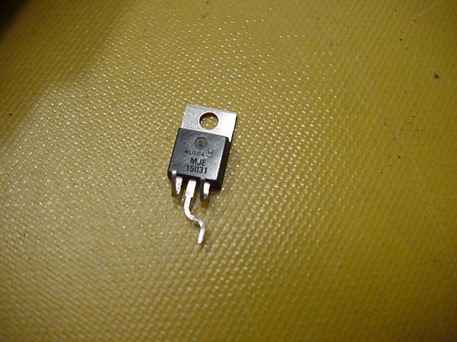 Prepare the MJE-15031 transistor by forming the leads as indicated. Never bend a lead of a TO-220 transistor without a small needle noise