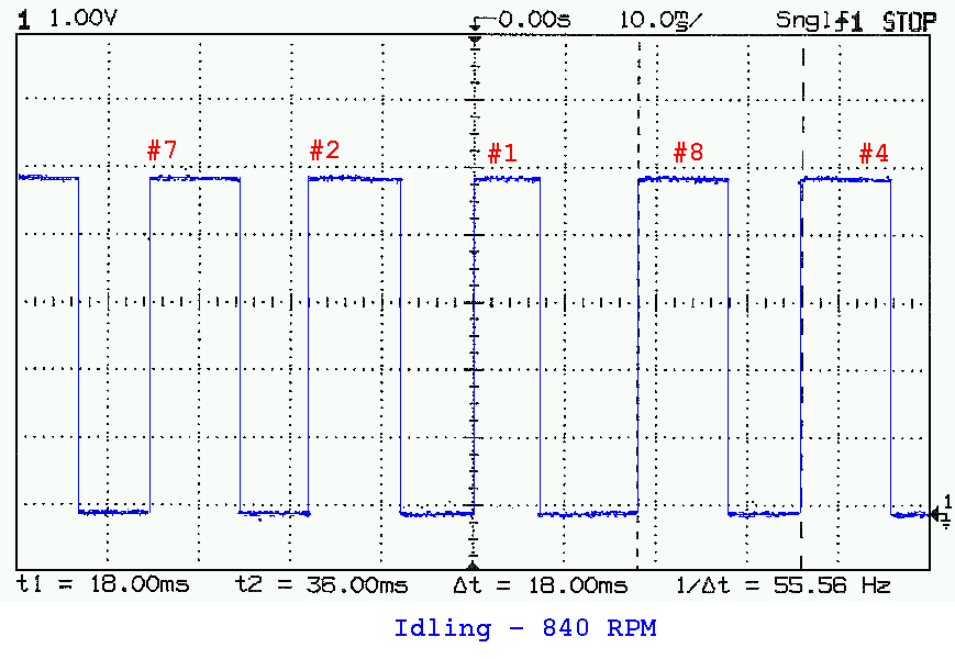 from the Hall Effect Sensor in the distributor. The rising edge is