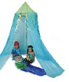 Delightful, ringed canopy of silk gauze to hang over a child's bed or to create a play space. Seven feet tall and will cover a twin bed. Comes with all necessary hardware. Packaged in a convenient carry case with handle.