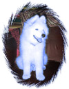 Free-form Deformation Tool--with just one tool you can quickly move (transform), scale, rotate, skew and add perspective to layers, selections or an image, thus saving time spent on individual deformation operations. Paint Shop Pro has three ways to deform images: (1) with the free-form deformation tool; (2) with the deformation browser which has preset deformation values; and (3) with the deformation dialog boxes which let you make your own choices. For the image to the left, I scanned in four photos; put each image on a separate layer; used the deformation tool on some of the layers; and then used the deformation dialog boxes for the others. I then applied a linear gradient fill with the flood fill tool to the background. To give it a finished look, I applied an edge from a third-party plug-in. I also used the deformation tool to create the text in the Doggie Picture Tube image below.