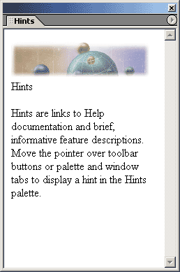 There are significant enhancements in expanding screen real estate and improving menu options: custom workspaces; palette stashing; Hints palette; and Objects palette navigation. With GoLive 6.0, you can save the current sizes and positions of palettes on the screen as custom workspaces, which makes it easy to work in different page environments (regular Web pages, pages with dynamic content, or wireless content). This includes dual-monitoring configuration. See top image to the left for a view of the Save Workspace dialog box. Palette stashing allows you to drag any palette tab to the edge of the screen to minimize it. When clicking on the tab, the palette emerges from the monitor edge and gracefully stashes itself once you've finished using it. See middle image to the left for a view of palette stashing. There is now a Hints palette that provides brief descriptions of Objects palette items along with cross-references to Help files. See bottom image to the left for a view of the Hints palette. The Objects palette contains a navigation scrollbar accessed by a visible arrow to offset tab-creep as modules or extensions are activated. To help guide novice Web authors, the Configure Flyout option lets you target a specific W3C standard that will remove objects from the Objects palette not in compliance with the targeted standard. |