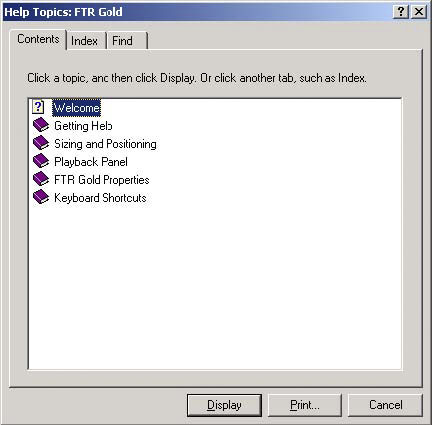 Foot Control--Installation is a snap for the Foot Control. There is a printed Installation Guide that comes with the Foot Control. It walks you through the process and gives you instructions for installation on different operation systems. Player Plus 2.1 Software--Again, the installation is easy. There are two help systems available. Standard On-line help proves assistance with detailed descriptions of the various features of FTR Player Plus. On-line help also includes step by step instructions, guiding you on how to perform different tasks. What's This? help provides instant access to help for information about a screen component. |