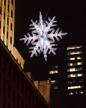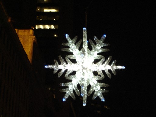 Stに飾られたUnicef snowflakeのイルミネーション。写真を撮るために車が渋滞していた。