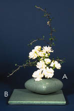 Use this soft, pillowy square shape for a grounded look to a flower arrangement. Shown at left are the 3 1/2" square Small Pillow Vase (‘e’) and the 6" Pillow Vase (‘f’). The Small Pillow Vase is lovely by itself, but I think it is especially effective when placed off center on a 6" Square Trivet. Because of the proportions of the Pillow Vases I find a pin frog essential for holding the flowers. The Small Pillow Vase comes with a 1 1/8" diameter frog fixed in place. The newest size is the Medium Pillow Vase which is 3 3/4" square anc comes with a 1 5/8" pin frog fixed in place. For the 6" Pillow Vase a 2" diameter pin frog (M2077...$8.50) is perfect, but is best not fixed in place, so if you don’t already have a pin frog be sure to get one (Pin Frogs).