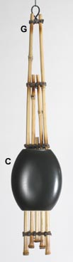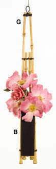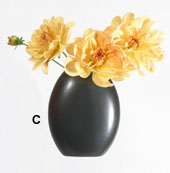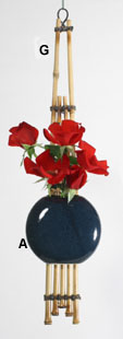 | Wall Vases Wall vases are a wonderful way to put a splash of color on the wall. There are five wall vase shapes to choose from and each shape is available in seven colors. The original Slender Taper Wall Vase is 5 1/4" tall (‘F’). There are two heights of Square Wall Vase: the A-Tall Wall Vase (‘E’) is 5 1/2" tall and the A-Extra Tall Wall Vase is 1 3/4" square and 7" tall (‘B’ and ‘D’). The two newest shapes are the Moon Wall Vase ('A"), a round, flattened disk shape and the Oval Wall Vase ('C'). These additions give a round counter-balance for the other three more vertical shapes. Each has a hole in the back so it can be hung on a nail or hook on a wall, or as shown here on a traditional Bamboo Holder. The vases have flat bottoms so they stand on their own for easy flower arranging. Bamboo Holders A: Moon Wall Vase...WV2015 Sapphire To purchase an item, use the chart below to choose the color and add to your shopping cart. Every shape is available in your choice of seven colors. Click here to see: Glaze Choices.